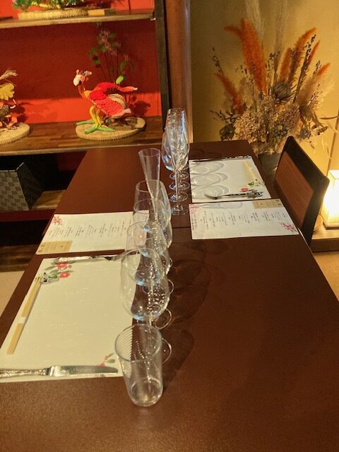 この度はすばらしいお料理を彩るワイン・コーディネートのご用命を賜り、ご参会いただいたお客様、料理長、フレンチシェフ、茶寮馳走庵の皆様には心より感謝申し上げます。 楽しい“和飲”の時間をありがとうございました。