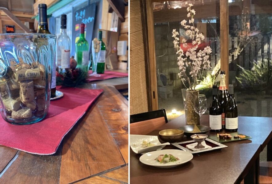 ライトアップされたお庭が素敵な馳走庵の会場には、やわらかな和紙のテーブルマットとワイングラスが並び、和モダンな雰囲気のなかイベントの高揚感が広がります。